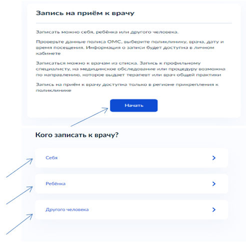 Нажимаем на вкладку запись на прием к врачу: