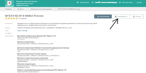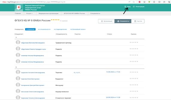 - Откроется окно ведомственного портала ФМБА: