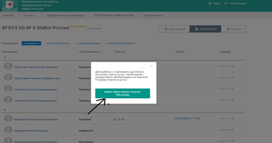 Запись через ведомственный портал медицинских услуг ФМБА России