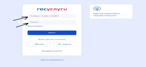- Далее сайт переходит на страничку Госуслуг, авторизуемся под своей учетной записью: