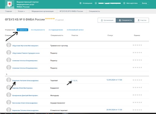 - Из открывшегося списка выбираем специалиста с актуальной записью: